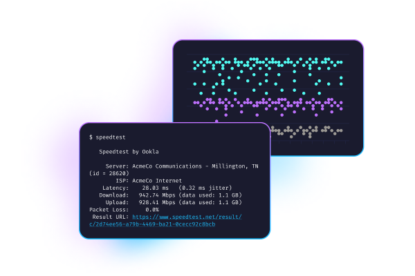 Speedtest CLI porta la tecnologia affidabile e la rete globale di server di Speedtest nella riga di comando. Progettata per sviluppatori software, amministratori di sistema e appassionati di informatica, Speedtest CLI è la prima applicazione ufficiale Speedtest nativa per Linux supportata da Ookla®